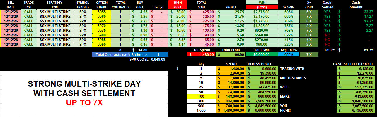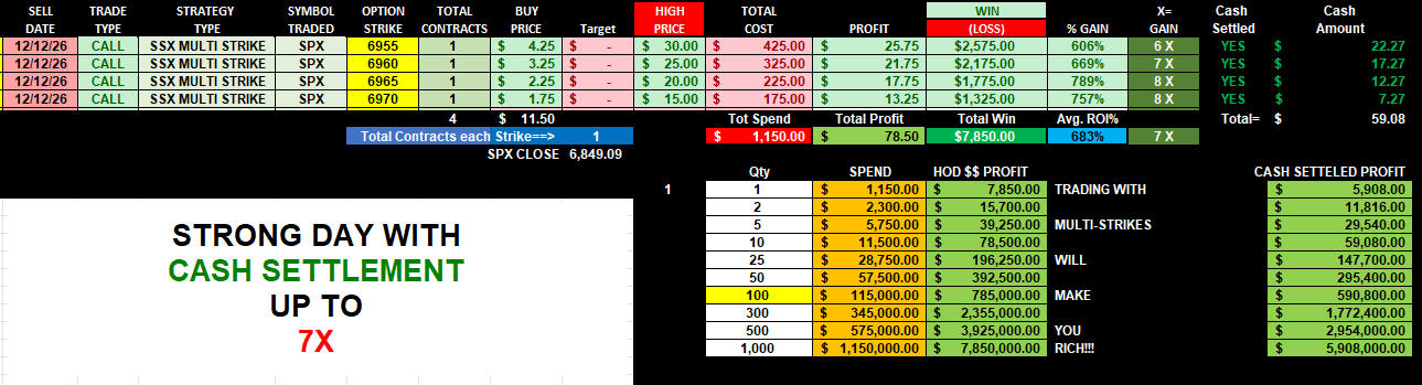 ALL the Multi-strikes made 7X gains with CASH SETTLEMENT!