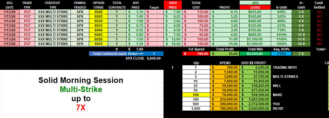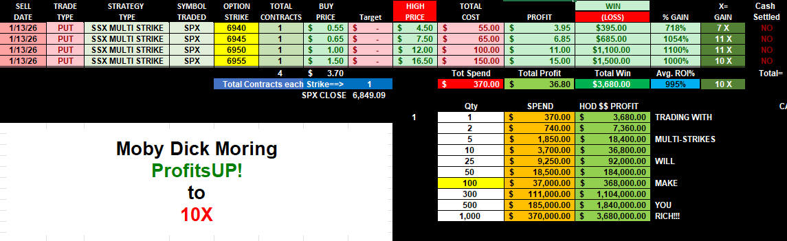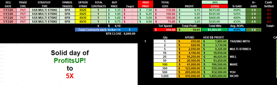 Other PUT strikes in the $1 Formula buy ranges all achieved the target 3-4X and beyond.