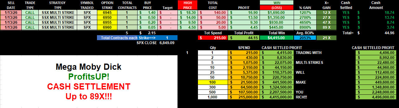 SPX was on the downtrend all day and then news hit at 12:30 creating a massive rocket short squeeze and the CALLS went Moby Dick parabolic with cash settlement but stopped just short of taking out yesterdays all time high at the magic number "33" which indicates to me a BIG move is coming. If SPX takes that "33" out then a test of 7000 should be hit tomorrow or by Friday; otherwise, I will be targeting 6900 or higher PUT strikes/spreads.