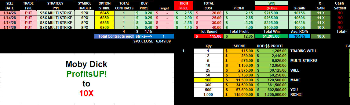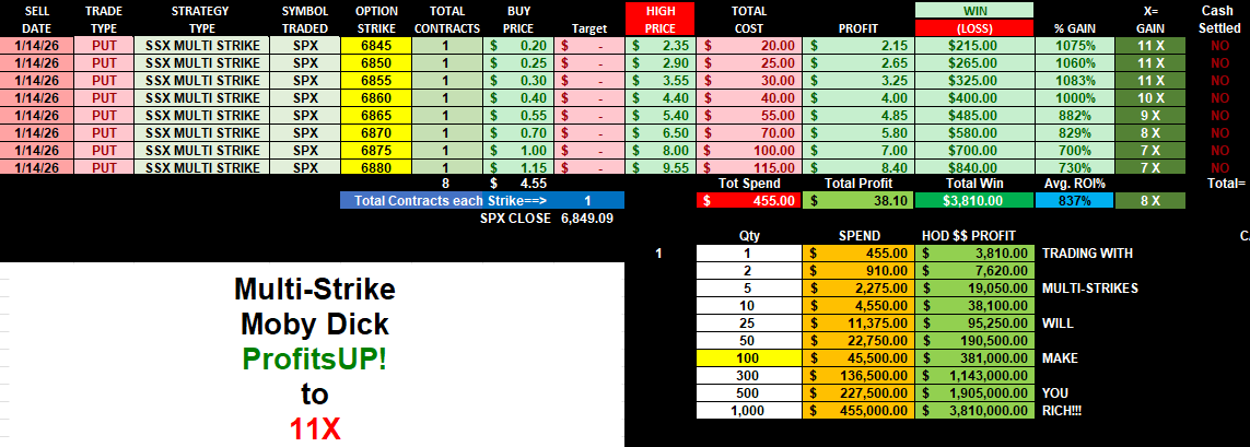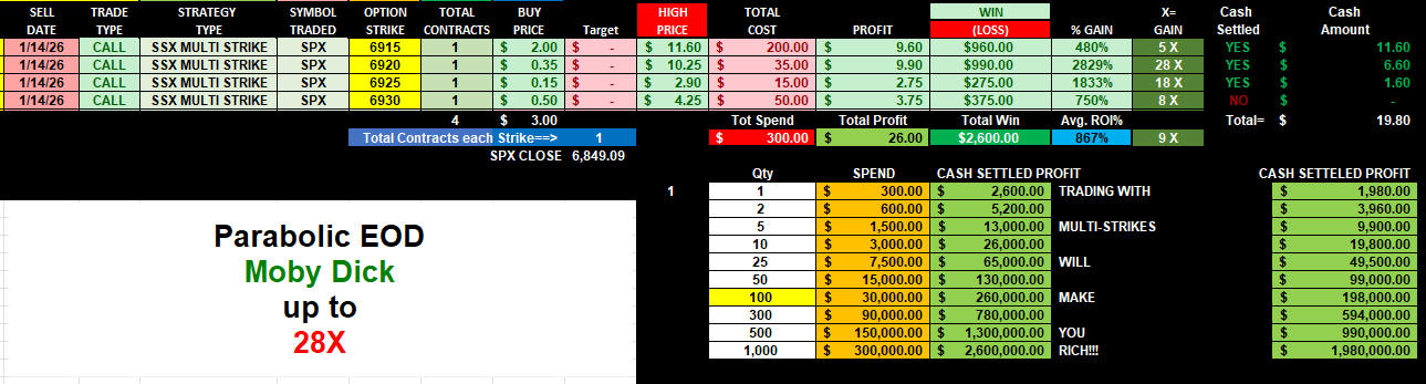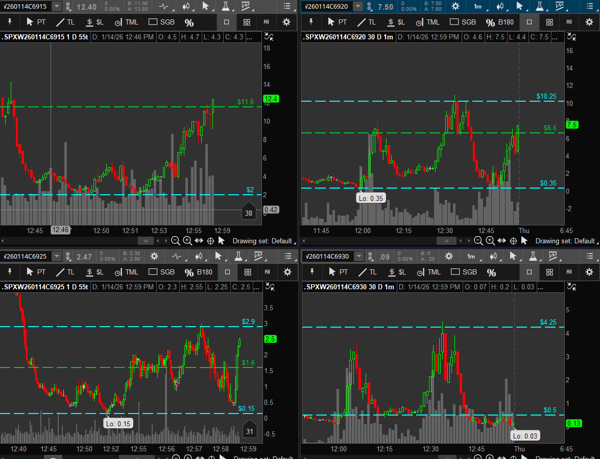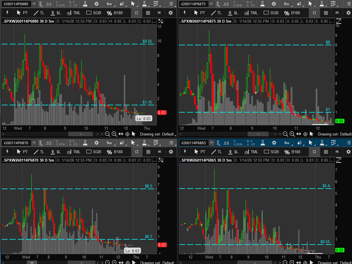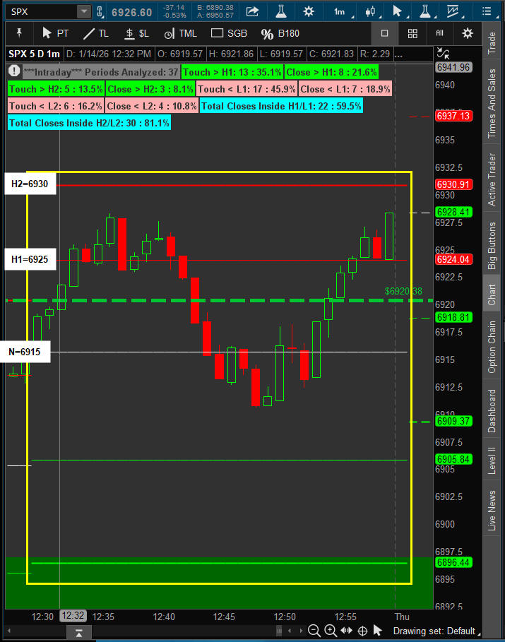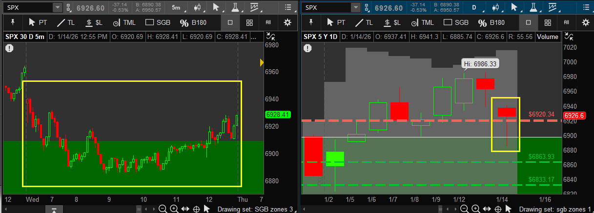 January 14, 2026 SPX - OPEN - 6937.41 / HI - 6941.30 / LO - 6885.74 / CLOSE - 6926.60 -37.14 -0.53% — Days Range: 55.56