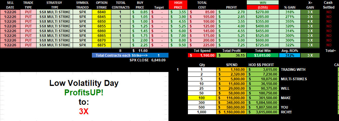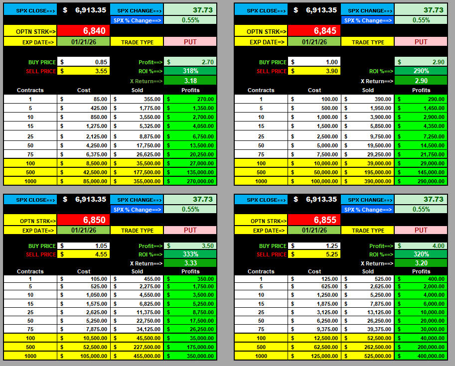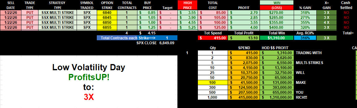ALL PUT Multi-strikes made 7X gains with CASH SETTLEMENT!