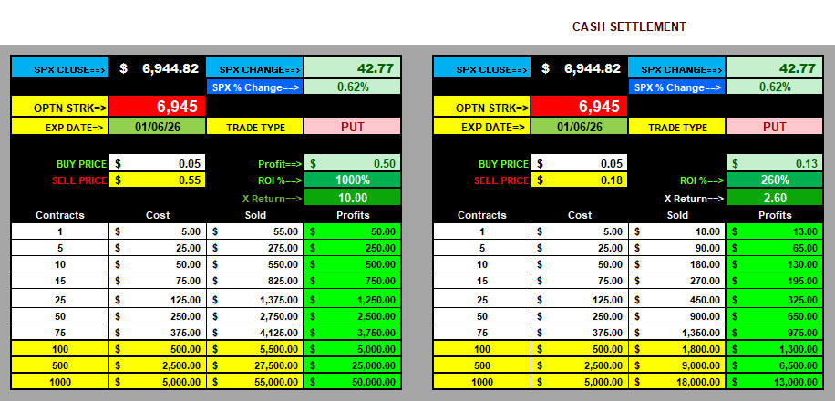 $1.00 Opening Formula Strike Ranges: CALLS 6960 / PUTS 6860