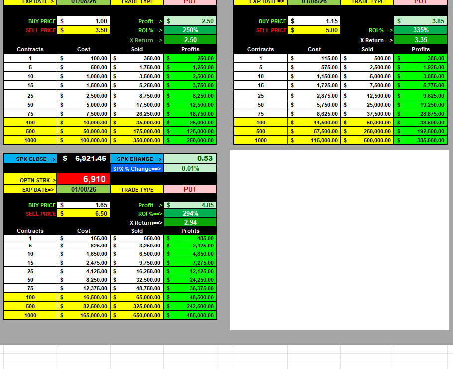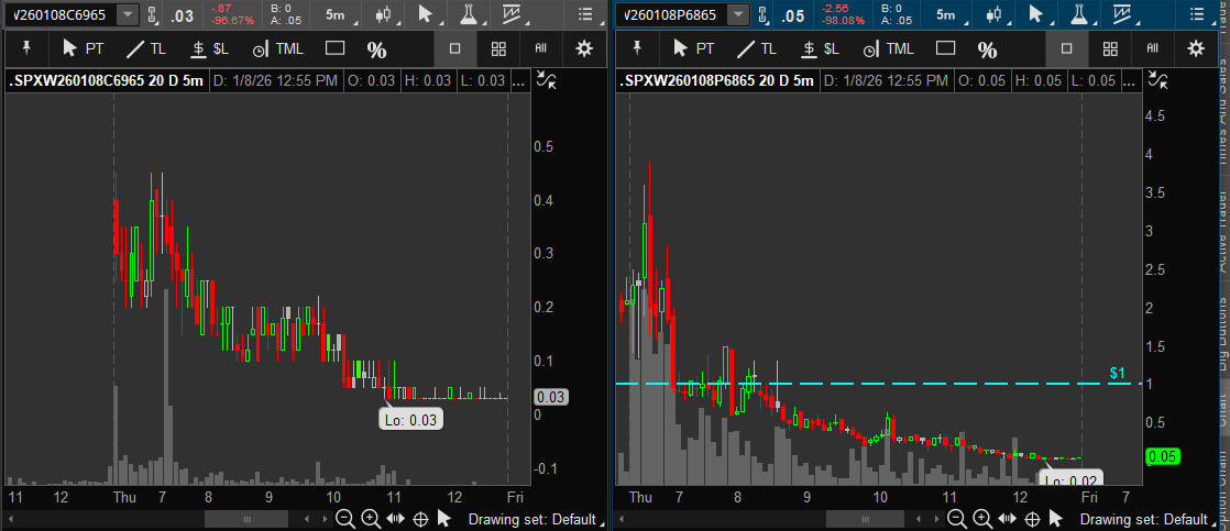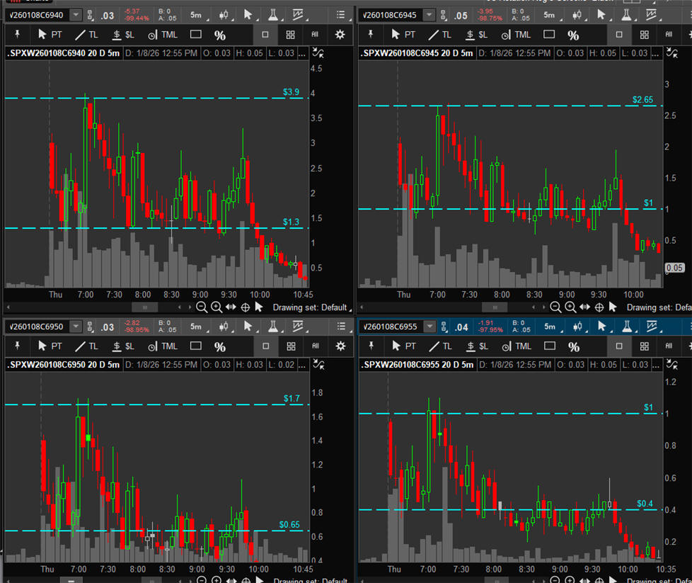 $1.00 Opening Formula Strike Ranges: CALLS 6965 NO Trades / PUTS 6865 - reached buy price but failed to hit the target 400% ROI today.