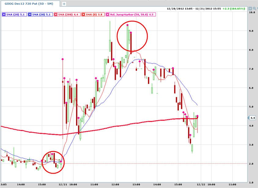 12/14/12 - GOOG just floundered the past couple of days so I did not play it today. I will be looking for a play next week for the rest of December.