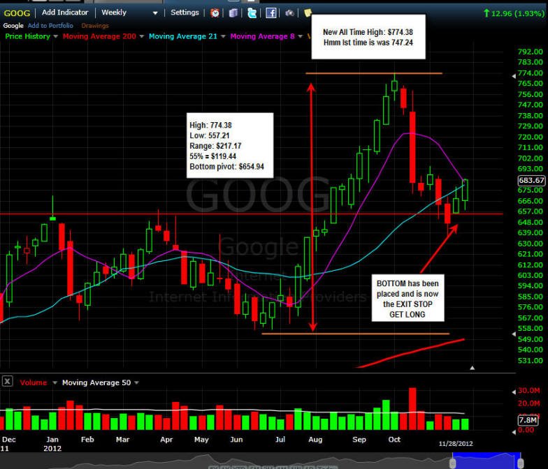 12/21/12- This is a tough chart to trade because it can move in either direction and with GOOG options being very expensive, you may not make a very big profit if you straddle it.