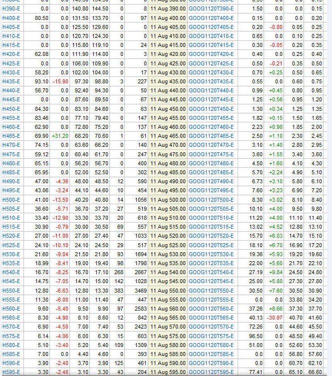 Here are the option prices today