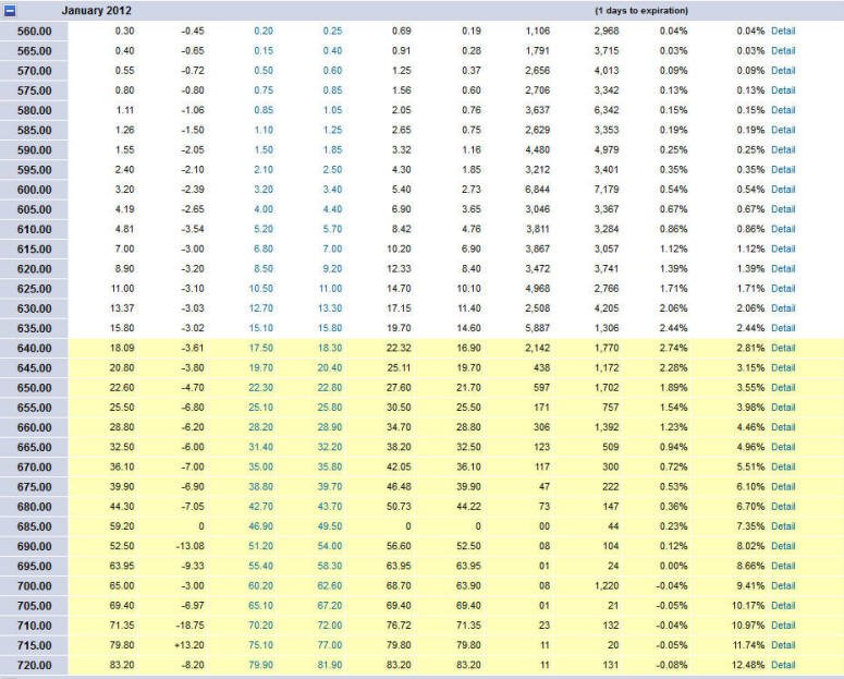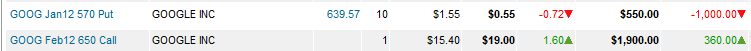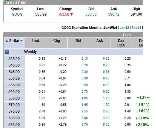 As you can see, GOOG attempted to put on some higher ground into the end of the year, but with a failed pre-earnings run it could be the time to strike gold with puts. Of course you have to do a straddle unless you just want to gamble so here is what I suggest.
